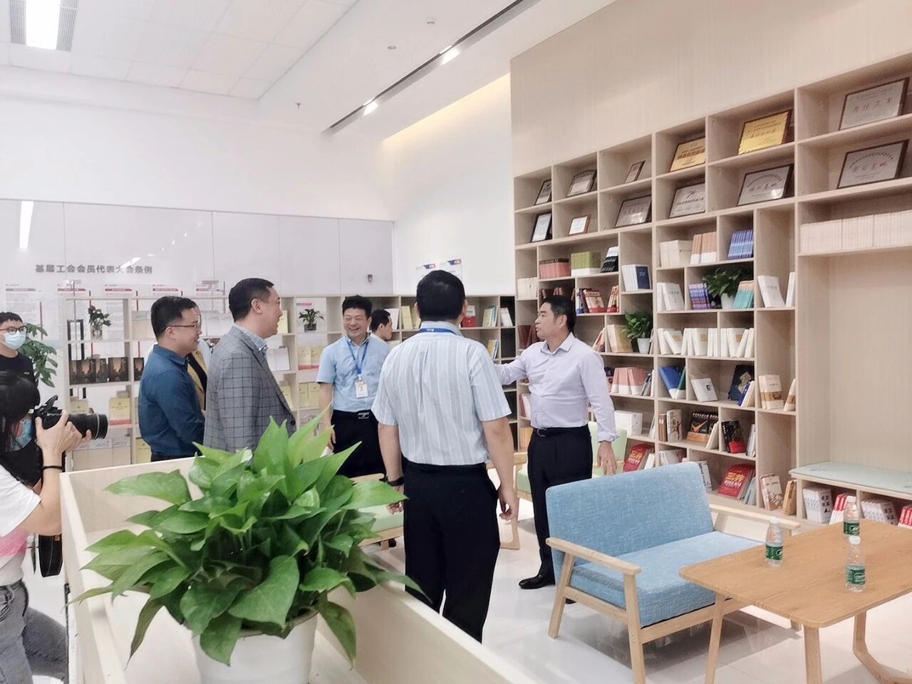 揭牌仪式后,宝安区人大常委会副主任、总工会主席欧瑞志一行参观了 “职工之家”,人人乐工会“职工之家”占地面积达2000平方米,是一个集培训室、职工书屋、棋牌室、党工共建活动室、健身房、台球室、乒乓球室、卡拉ok室、单身职工交友中心、职工直播间于一体的多功能空间,分隔清晰、动静皆宜。